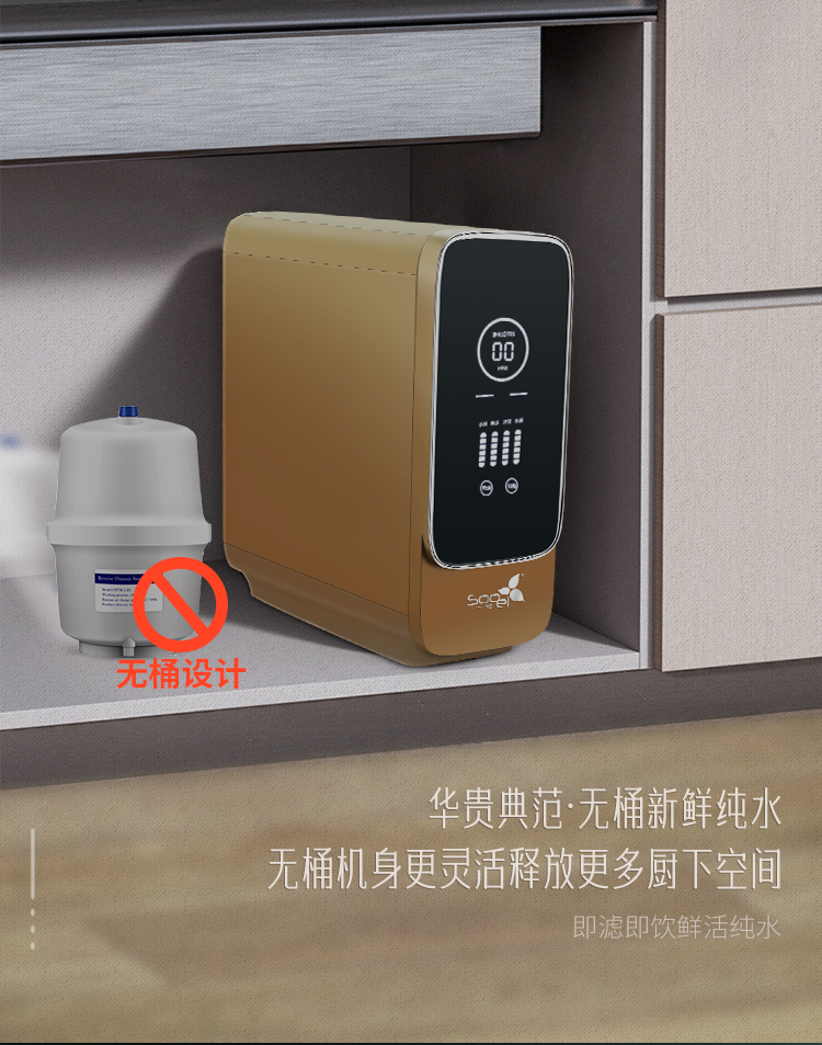 苏尔智净600加仑净水器不加装压力桶的前提下每分钟纯水制水1.5升以上。不需要压力桶,并且电控稳定,