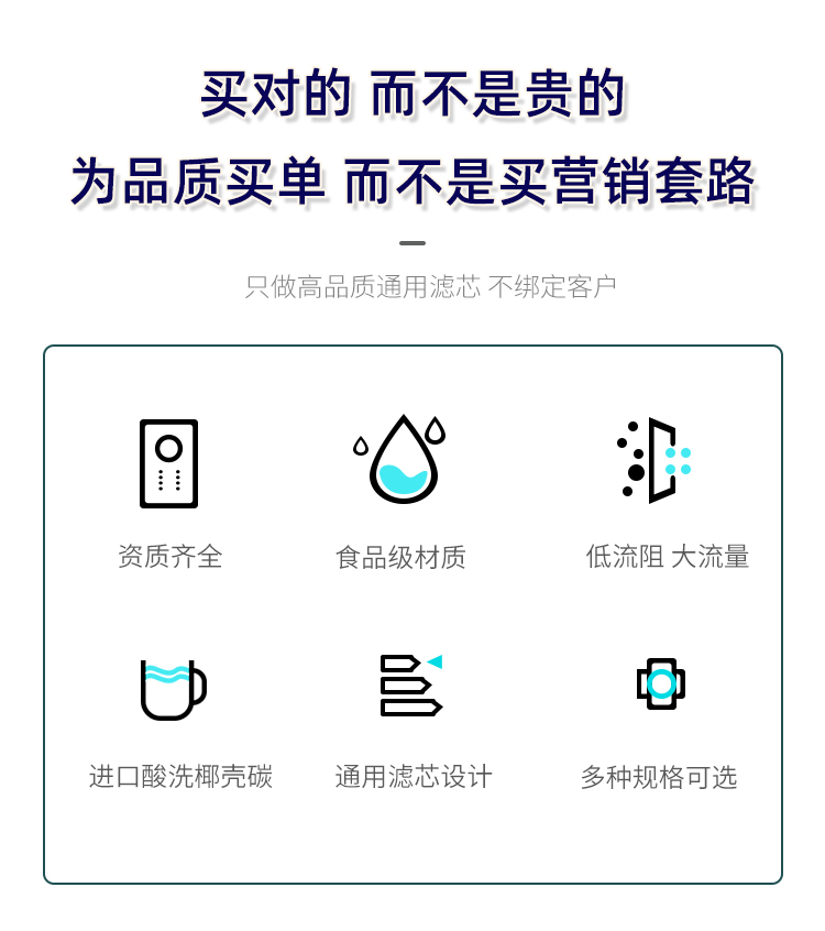 赛纯滤芯全部采用金级标准,滤芯全部是金标设计,活性炭滤料采用进口高碘值椰壳活性炭,酸洗工艺,灰分度低,黑水少