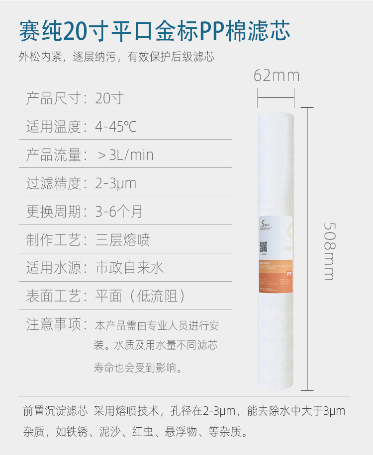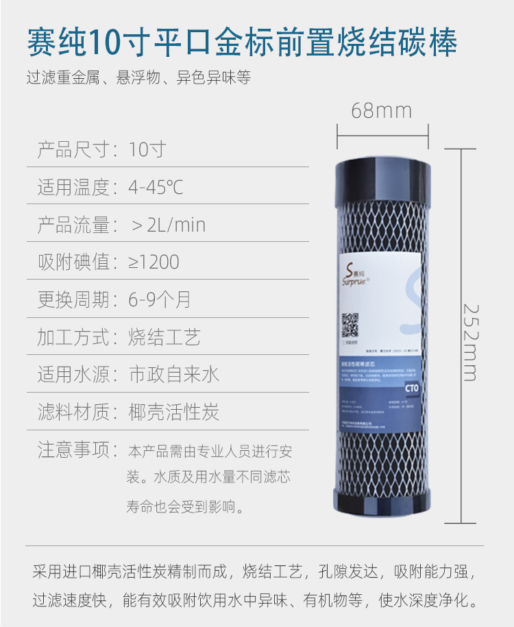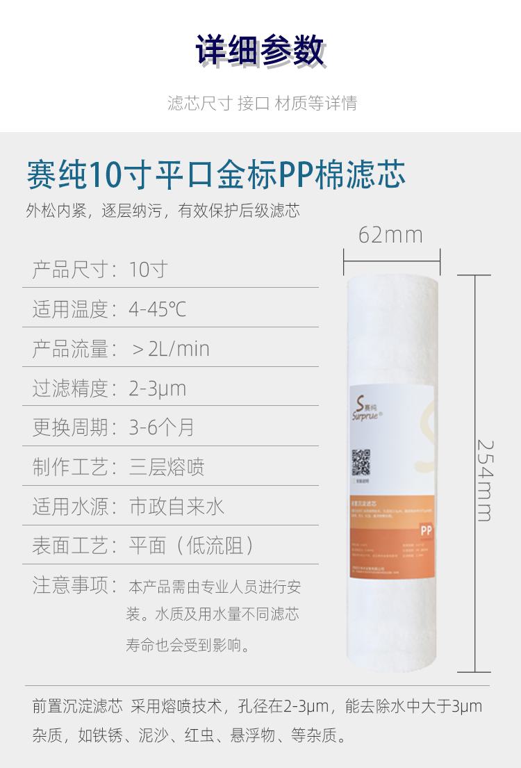 Surprue赛纯滤芯:家用净水器通用滤芯,10寸前置沉淀滤芯,聚丙烯熔喷滤芯、PP棉滤芯,平口前置颗粒碳,平压前碳UDF平口烧结碳棒,平压压缩碳,前置CTO滤芯,平口后置大T33滤芯,净水机通用滤芯,净水器滤芯套装,净水器3级滤芯套装,