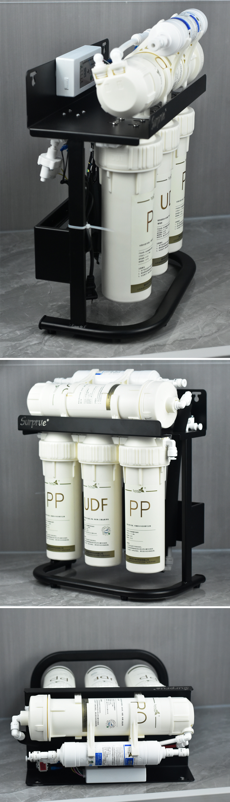 苏尔润净600加仑净水器不加装压力桶的前提下每分钟纯水制水1.6升以上。集成水路板减少
