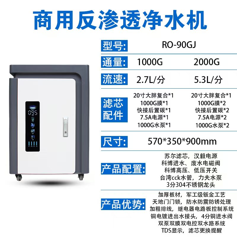 办公楼、餐厅、学校、医院、健身房、商场、酒店、工厂等场景。RO-180GJ型号内置200L水箱,后置