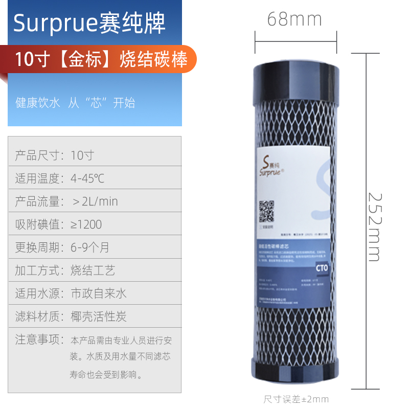 家用净水器通用Surprue赛纯10寸通用金级前置烧结碳棒滤芯采用进口...