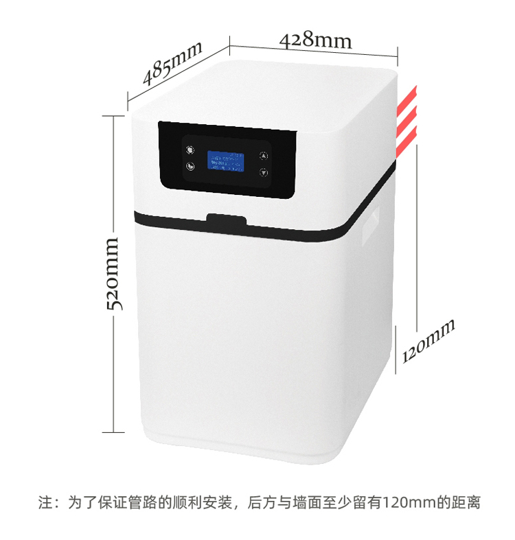 7、428*485*520体积小巧,侧面旁通阀设计,安装后方便后续维护