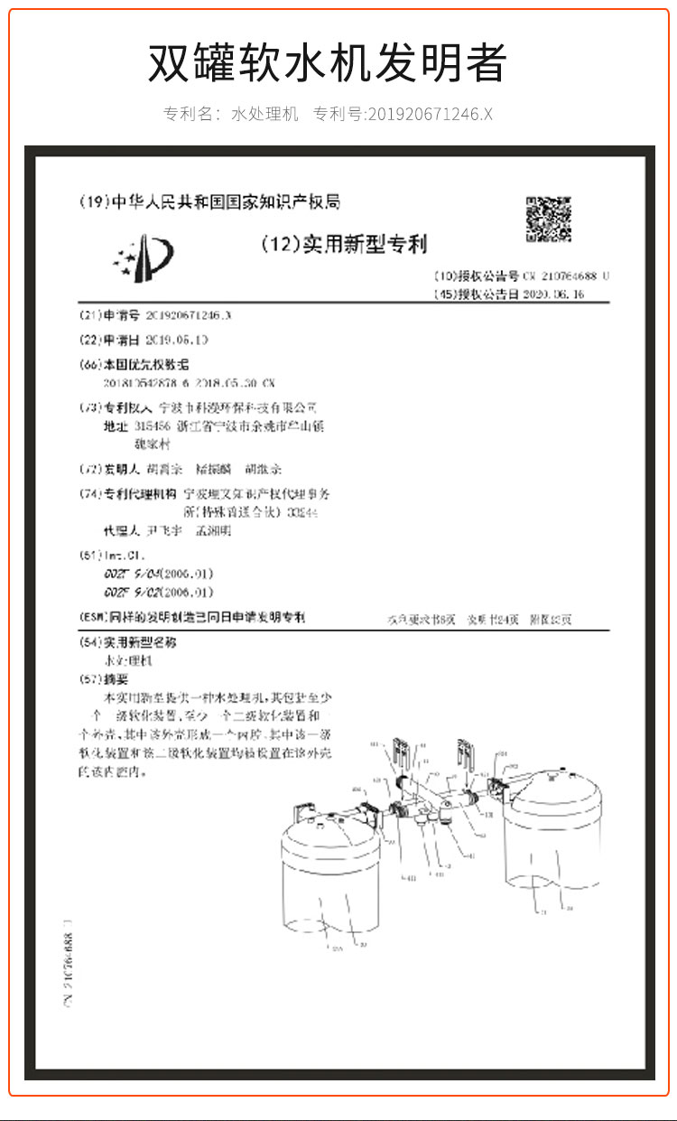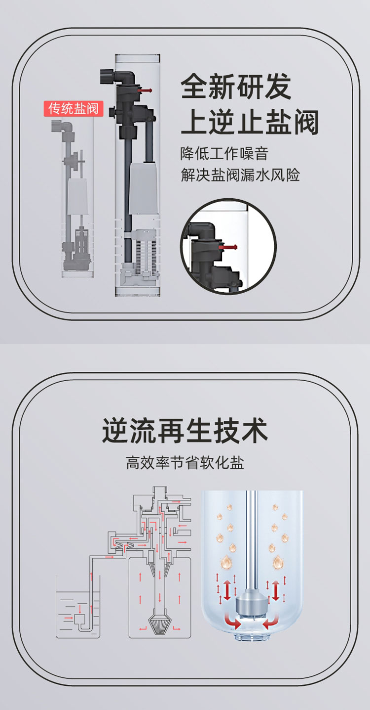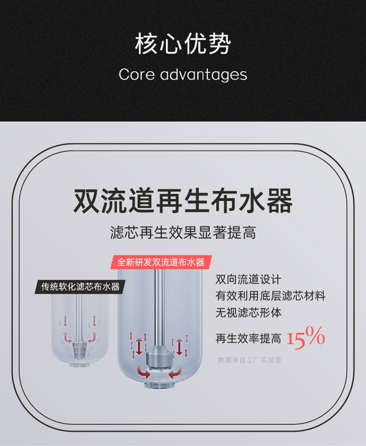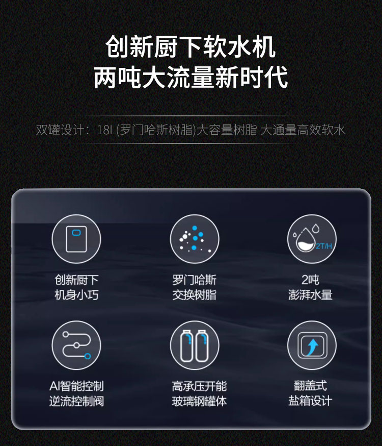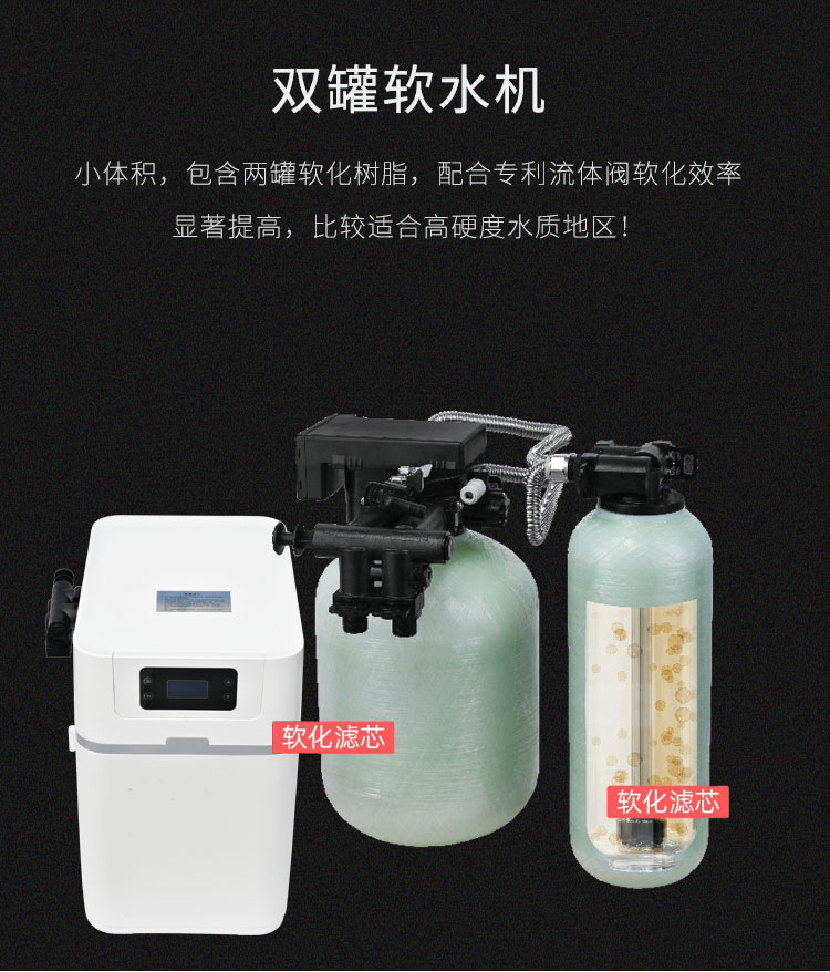 2、创新双罐设计,18升大容量树脂,保证软化效果