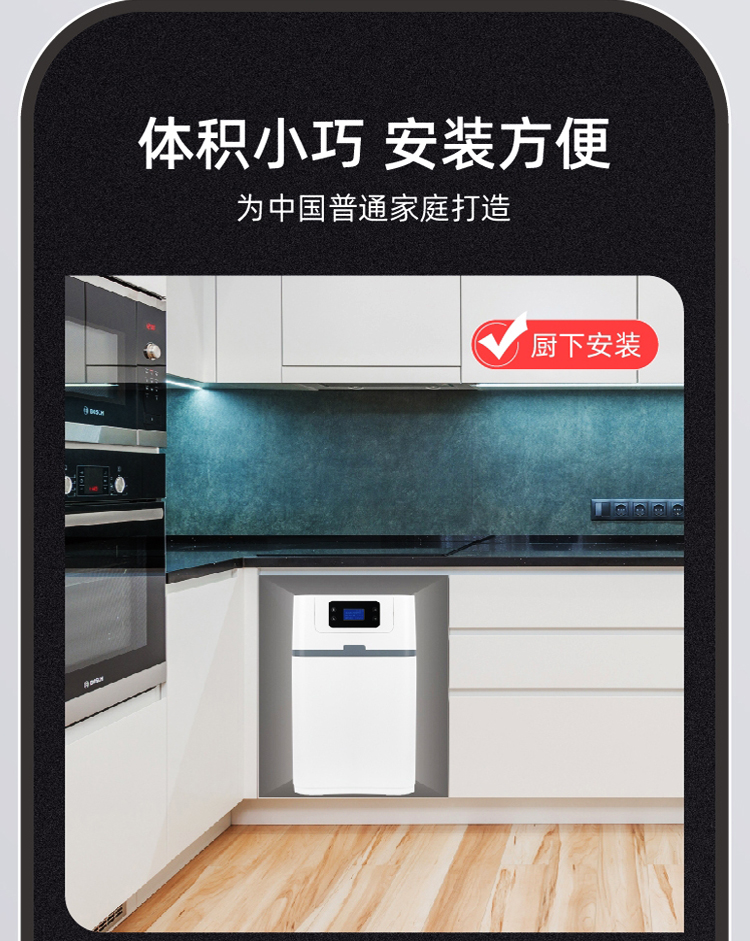 3、体积小巧易安装,轻松安装在厨下,节省空间