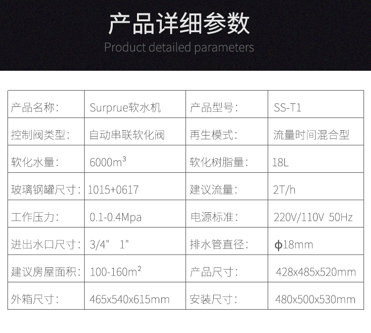 Surprue赛纯中央软水机,具有体积小易安装、单阀双罐大流量、18L罗门哈斯树脂软化效果好、72小时