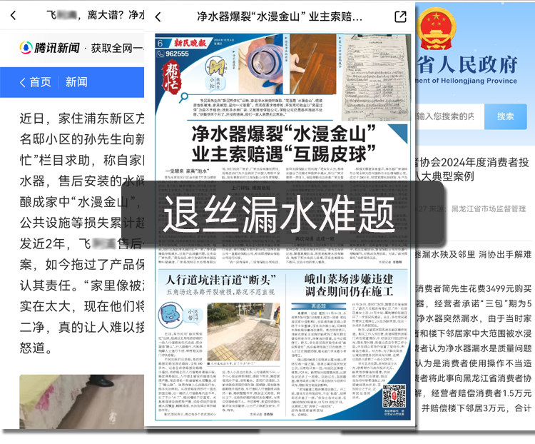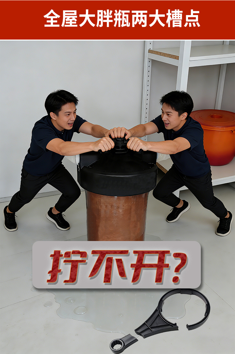 1、更换滤芯时拧不开,更换滤芯后拧不紧,特别费劲儿。2、明明拧紧了,过一段时间客户反