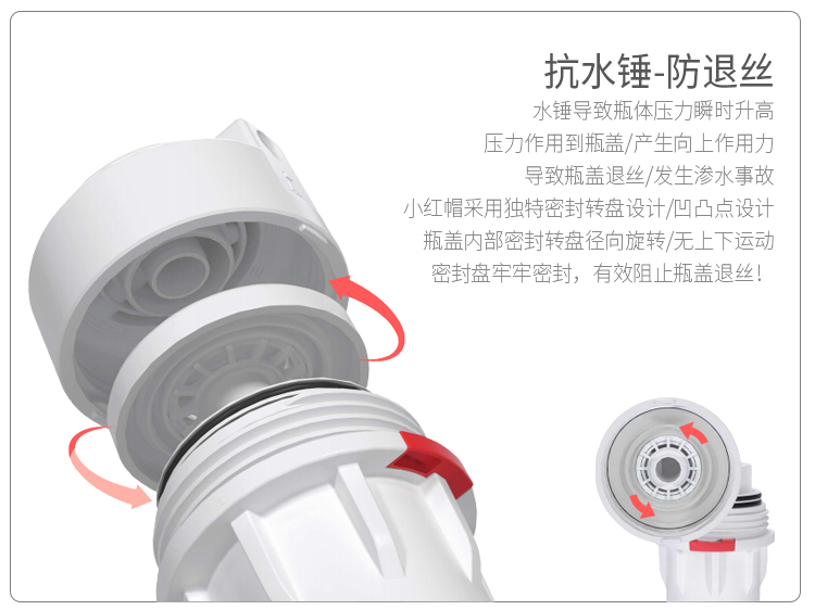 小红帽大白瓶是怎么实现轻松拧开和拧紧,又能够承受20到30公斤水锤冲击缺能做到不退丝的呢?