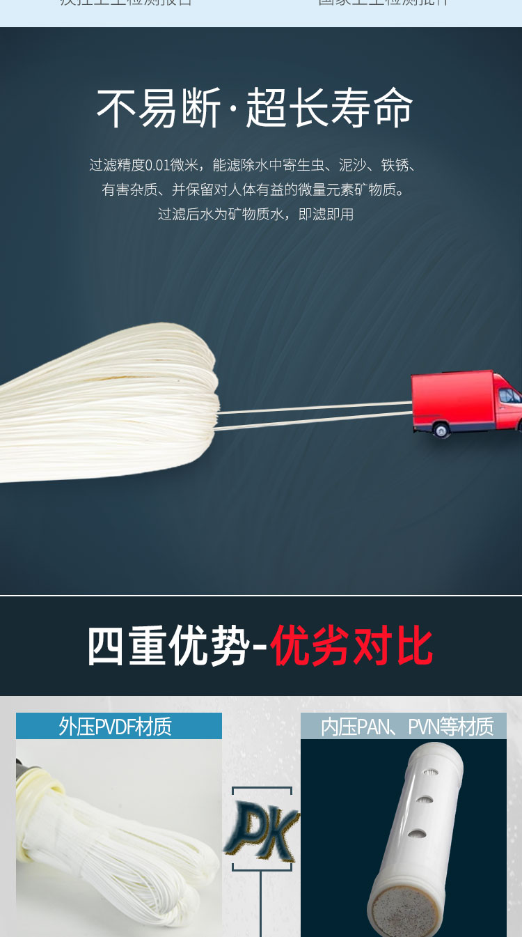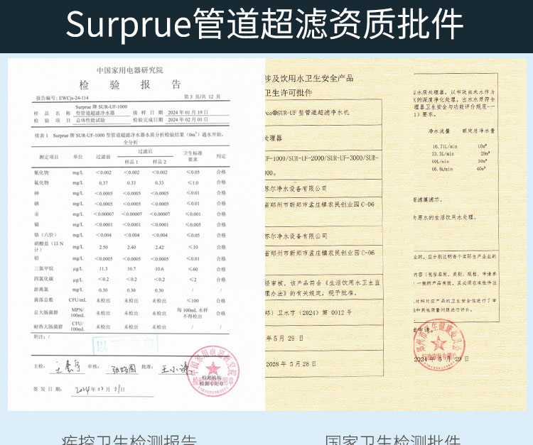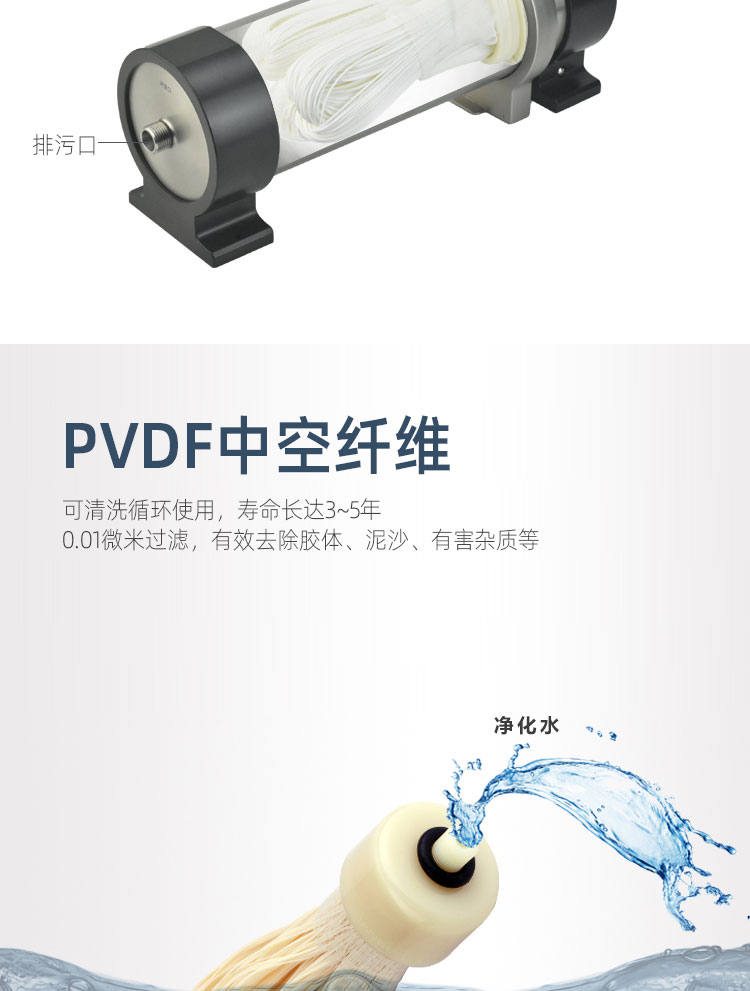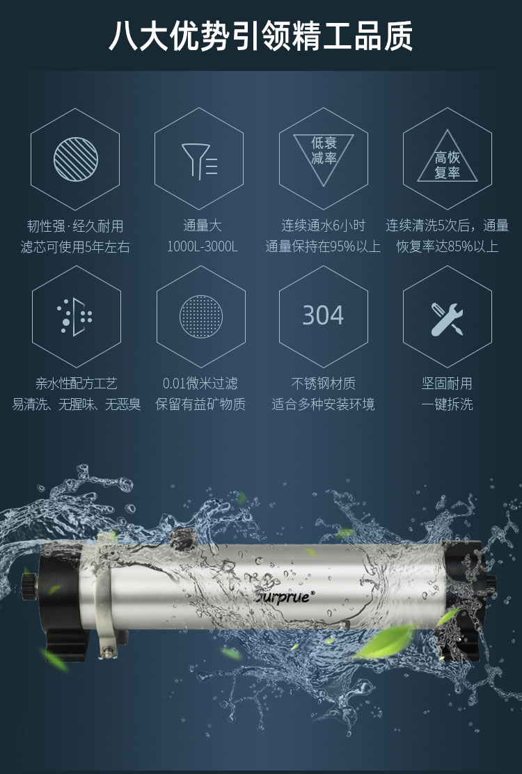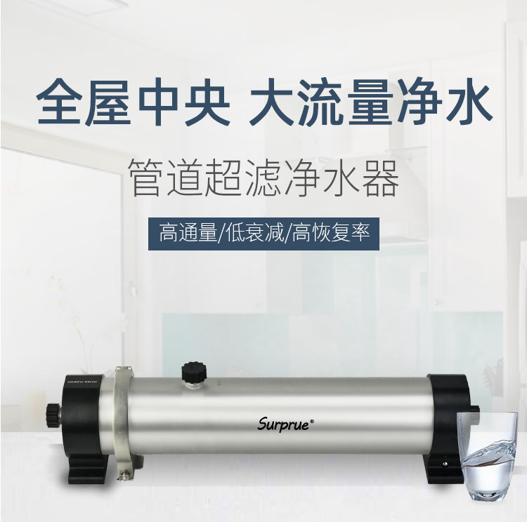Surprue赛纯不锈钢管道超滤的优势:1、PVDF材质UF膜丝任性强、易清洗、寿命长。2、亲水性好,传统