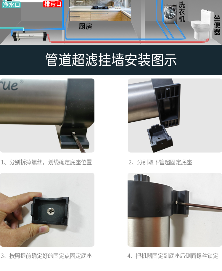 门去记录排污时间了,每次冲洗马桶,冲涮拖把就相当于给管道超滤排污了。另外,选配管道超滤时要考虑