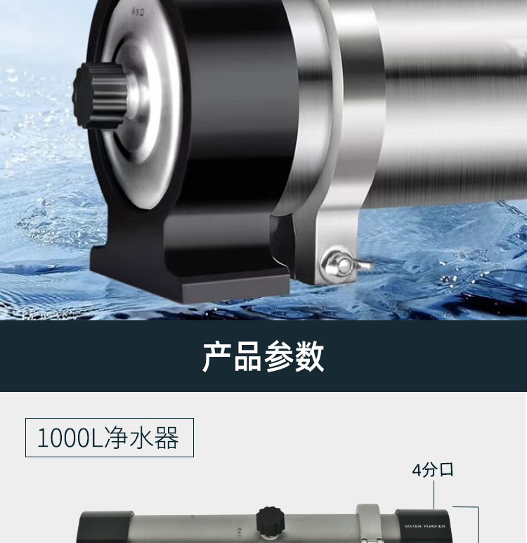 全屋中央大流量净水过滤器,大通量、低衰减、高恢复率,有1吨/小时、3吨/小时两种规格。过滤精度0.1-